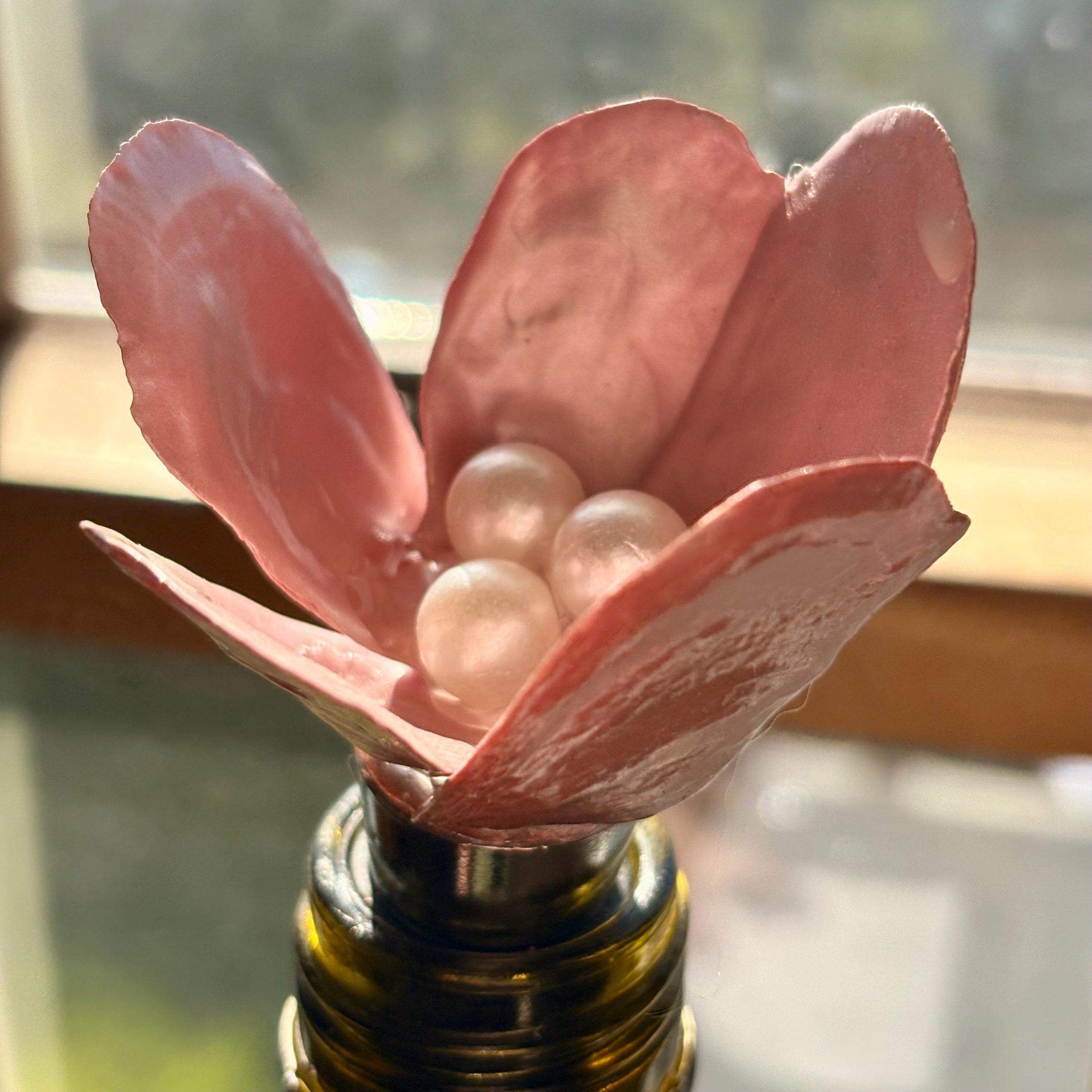 Oyster Shell Pink Magnolia Wine Stopper: Coastal Barware Gift