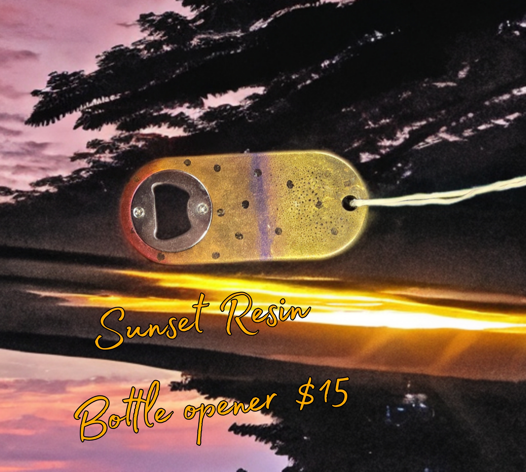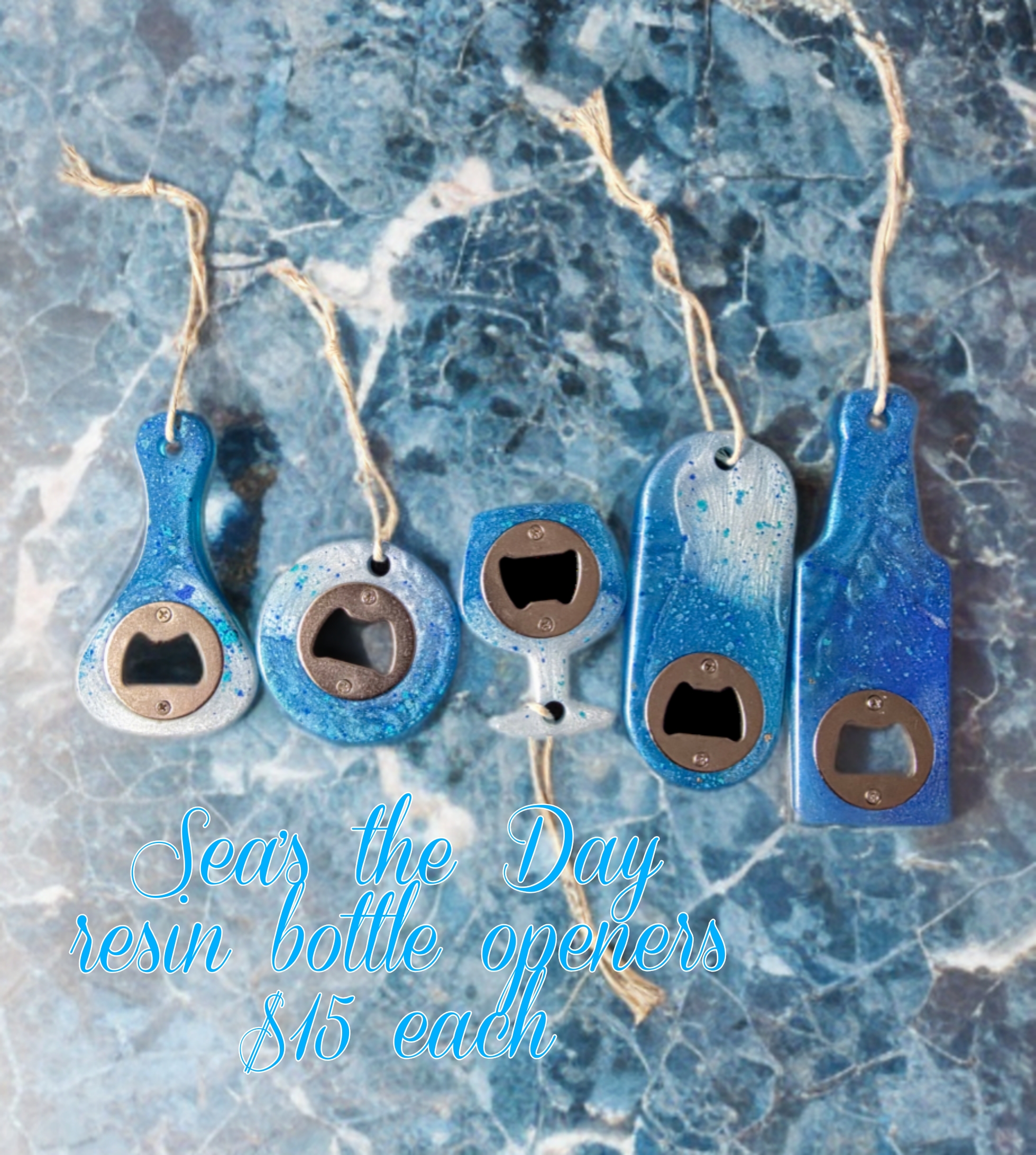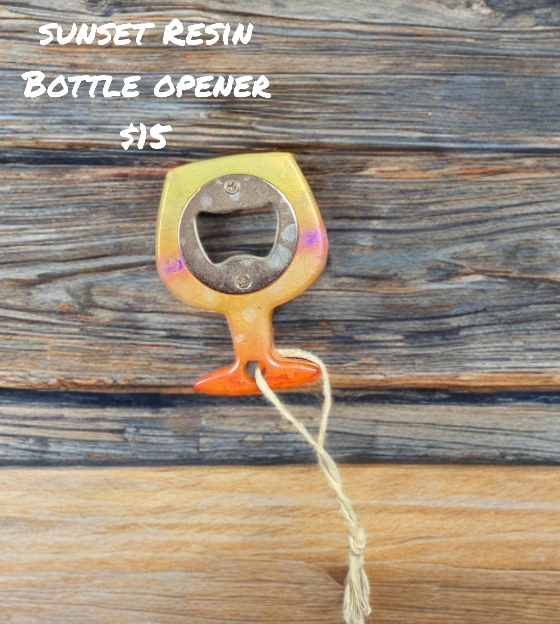 A set of Resin wine stopper and bottle opener they can be made individually or as sets . Each made to order with colors you choose or buy premade ones. These are a perfect gift for your summer guest gift , wedding gifts, bachelorette gift ect. They can be ordered individually or as sets and can also be ordered in bulk as gifts. Feel free to contact me for more info.