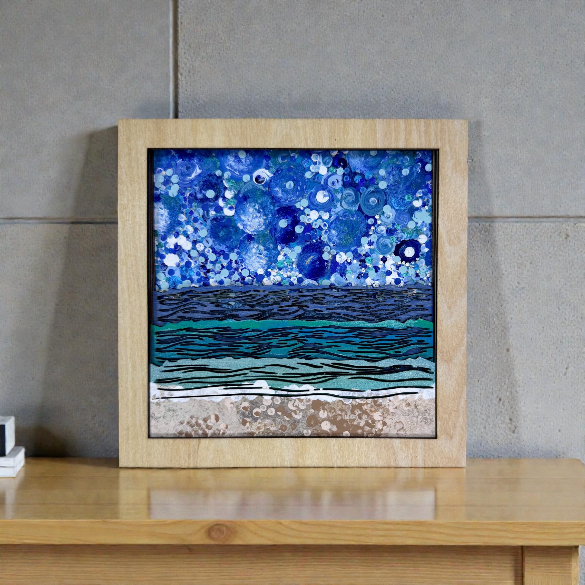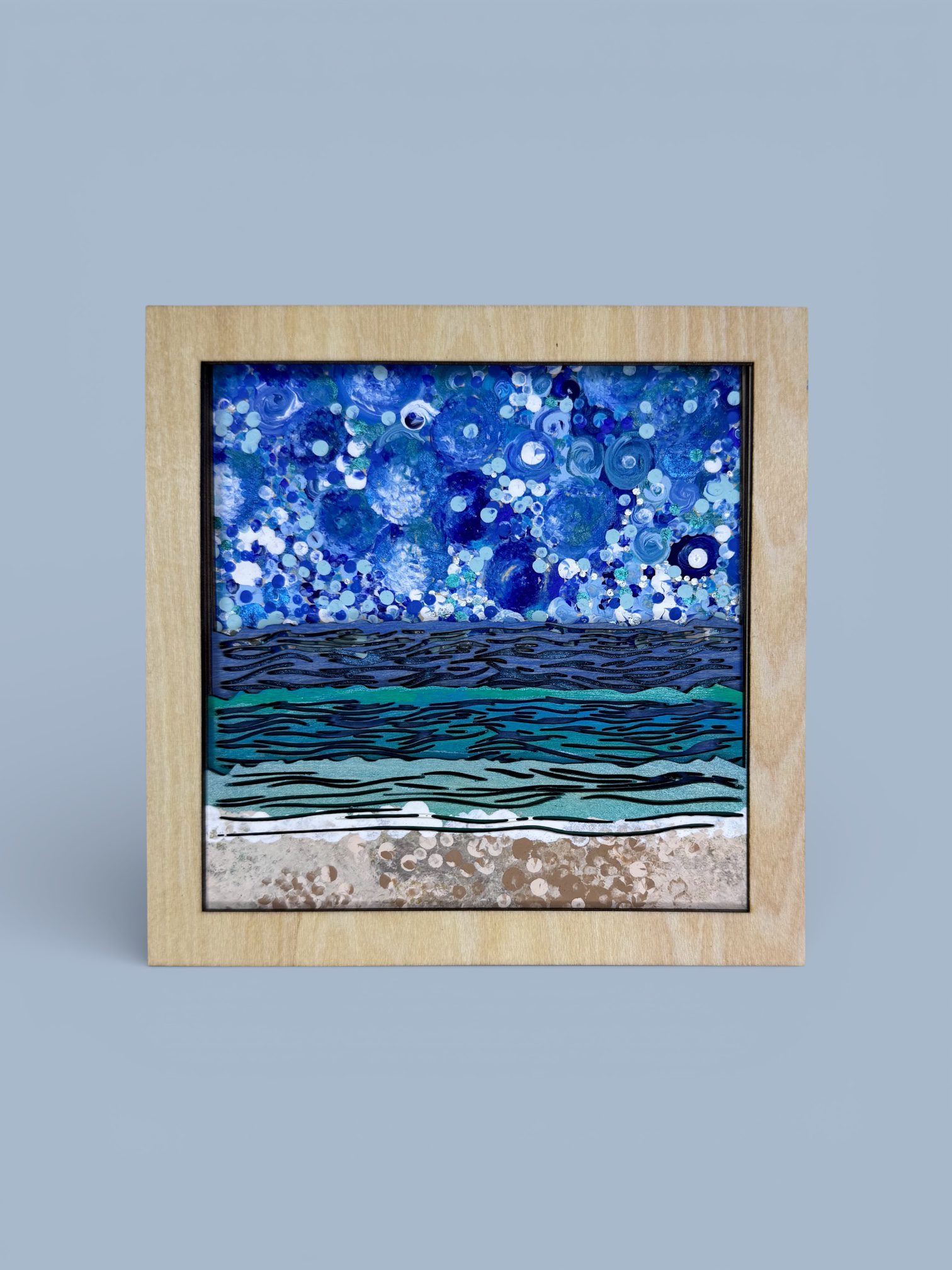 Fun interpretation of a beach and sky scene. These small pieces fit in lots of different spaces and make a great gift for someone who likes something a little different.