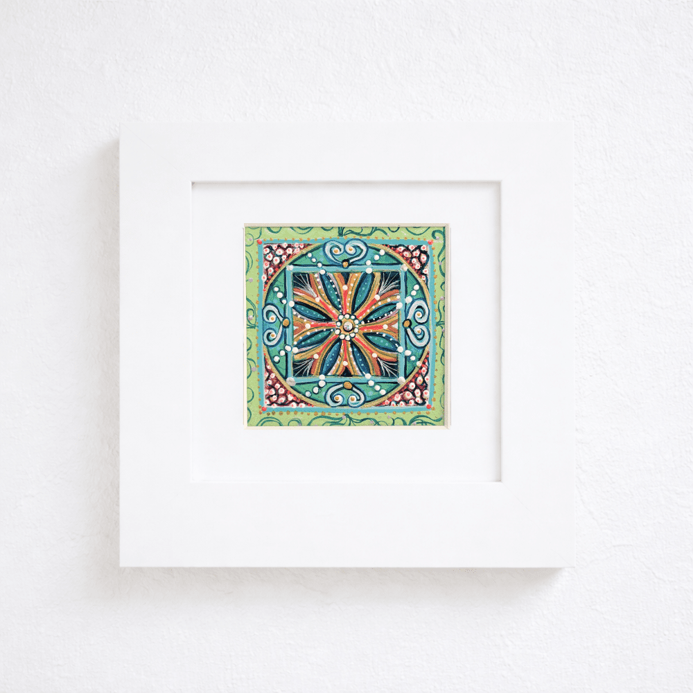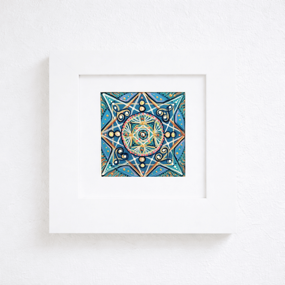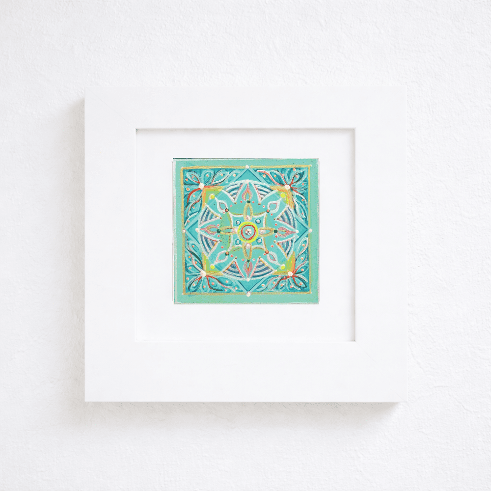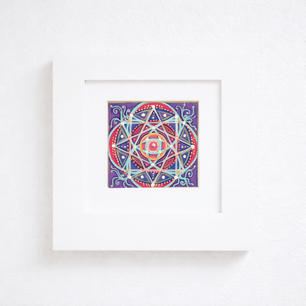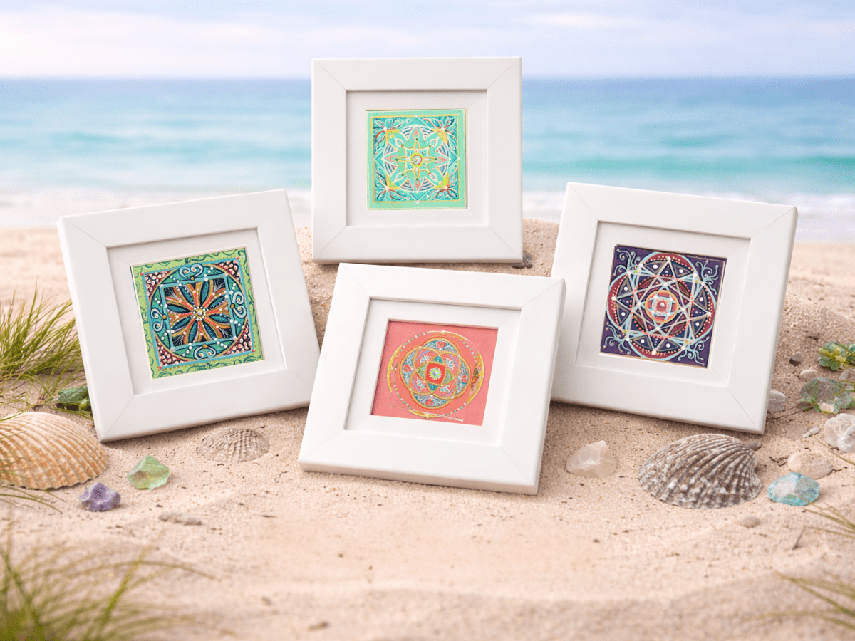 A curated collection of twelve hand-painted original mini mandala artworks. Each piece is one of a kind, painted individually and framed as a complete, ready-to-display work.