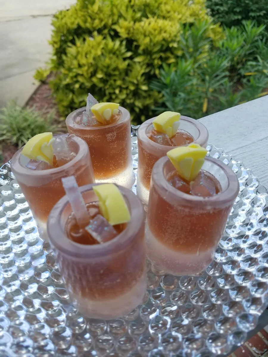 The bourbon, lemon slice, ice and even the shot glass are all made of soap!