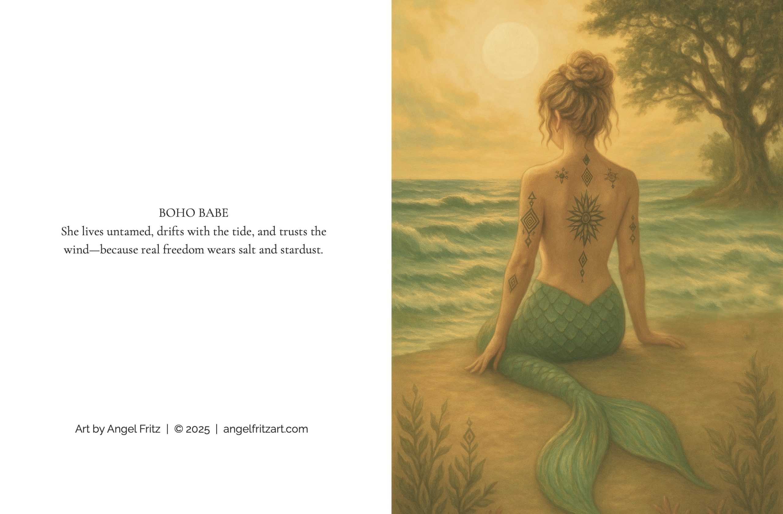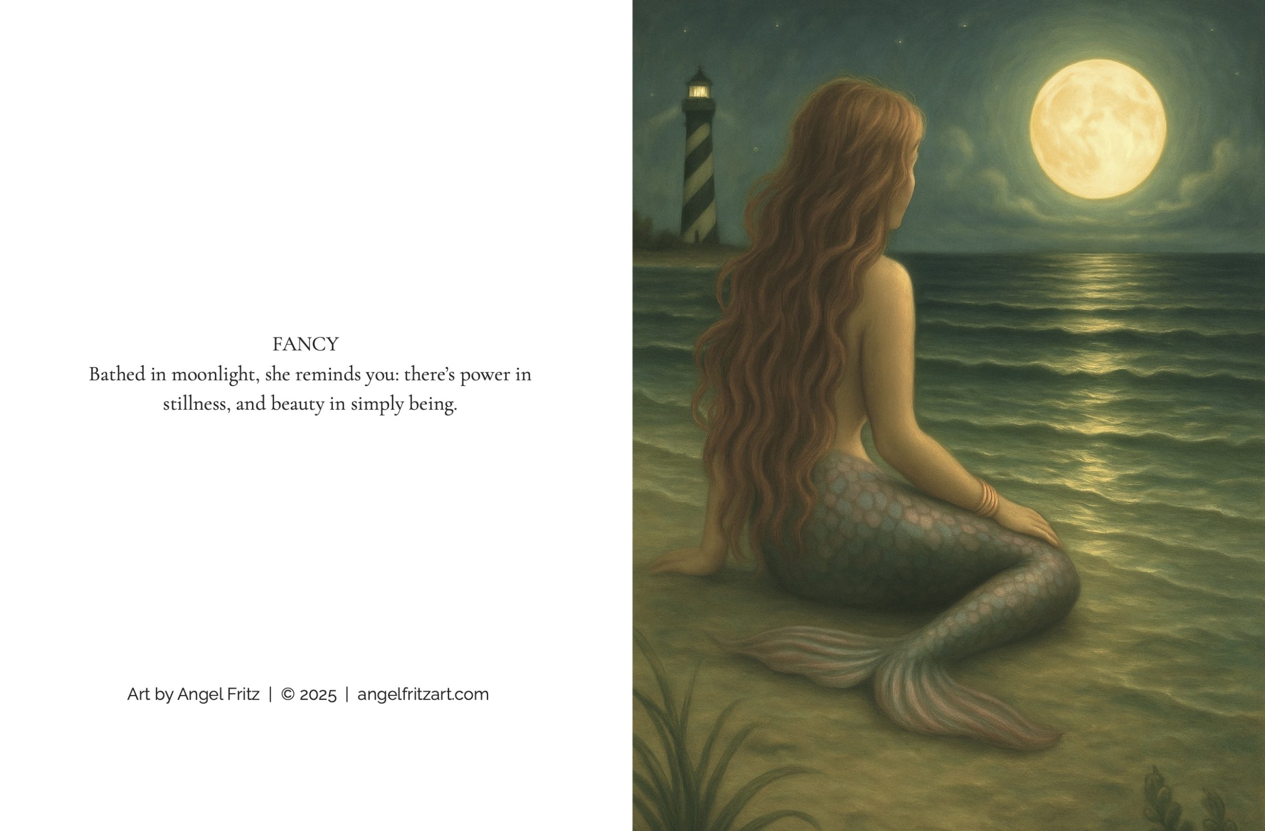 Reimagined from original mermaid paintings by Angel Fritz, this boxed set of folded note cards brings coastal beauty and timeless art into everyday correspondence.