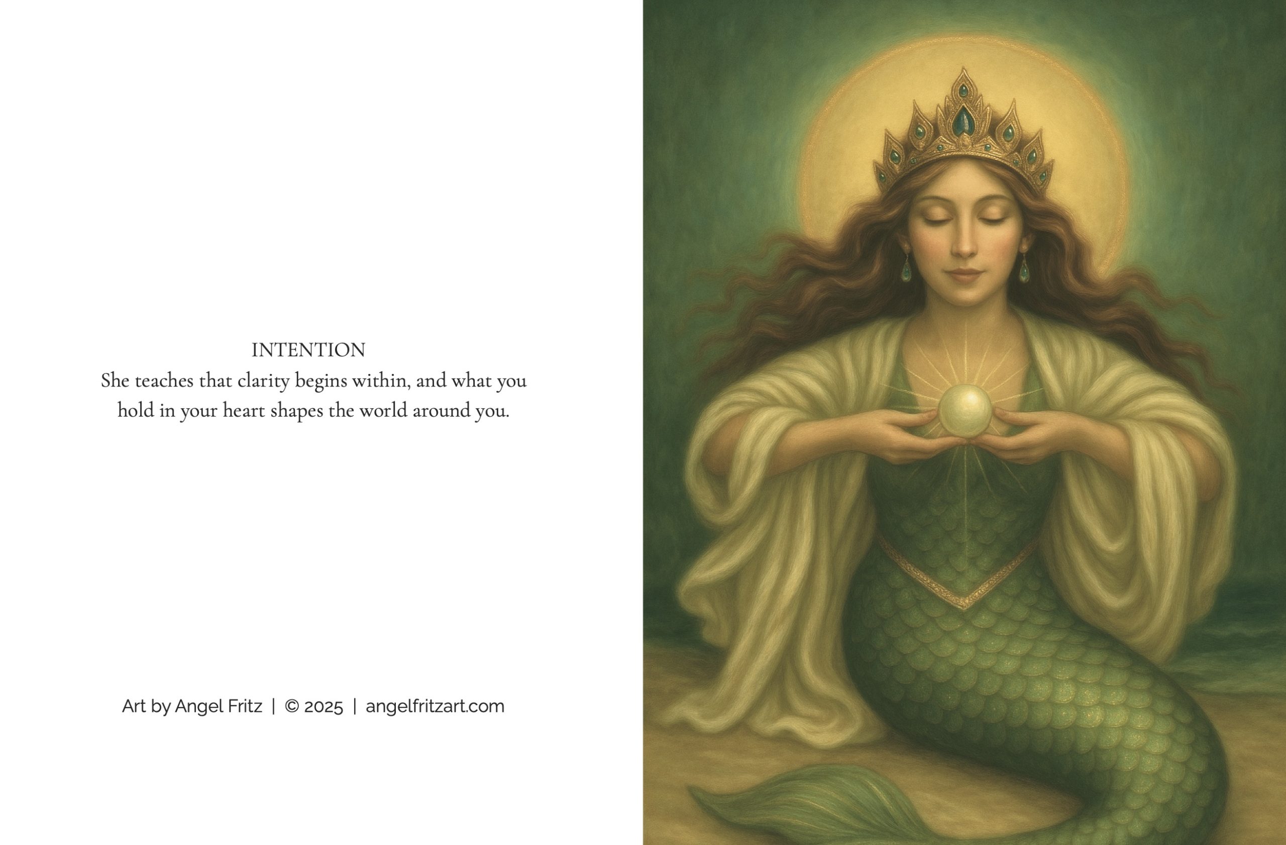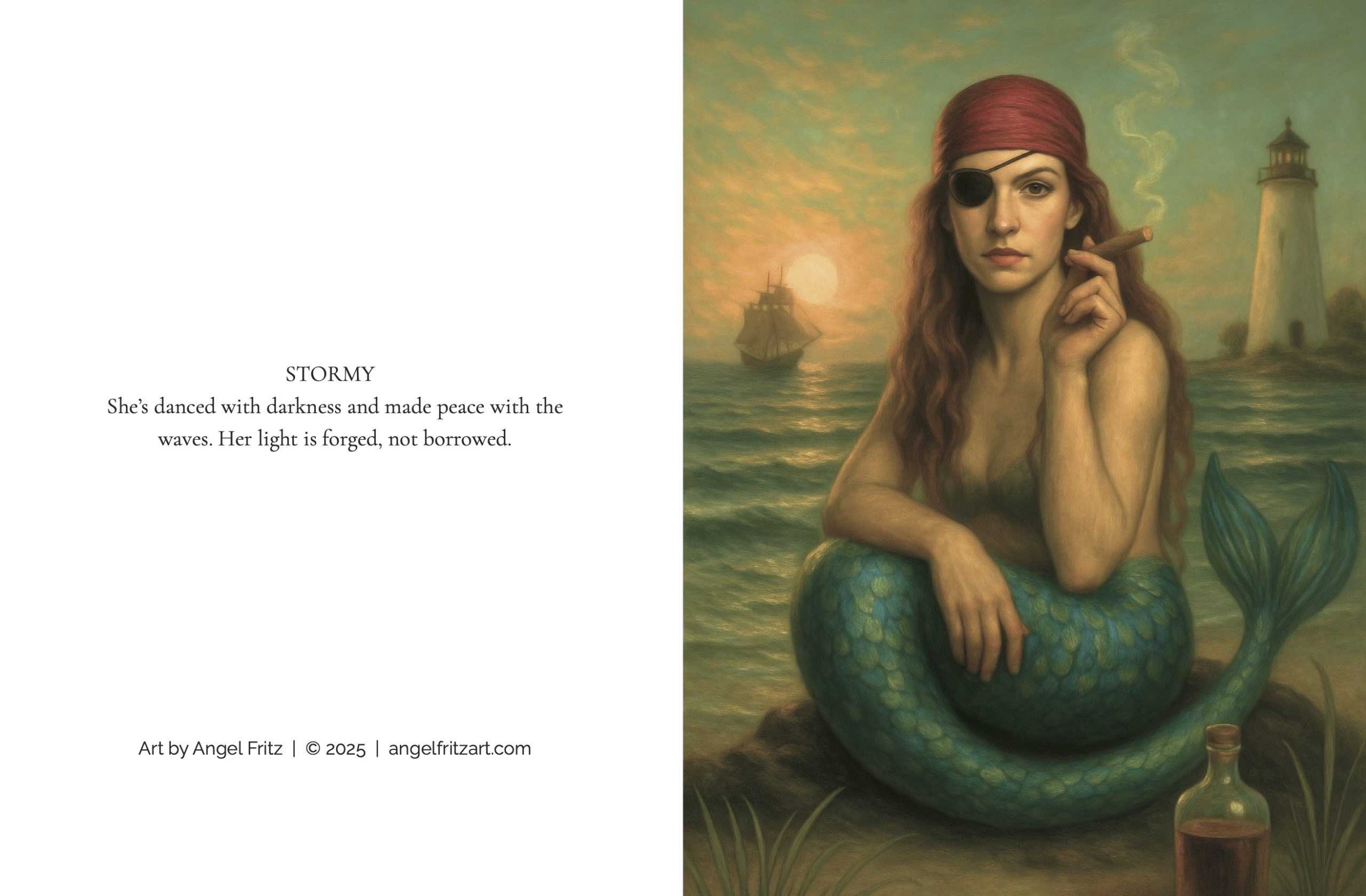Each card includes a poetic mermaid quote on the back inspired by the artwork