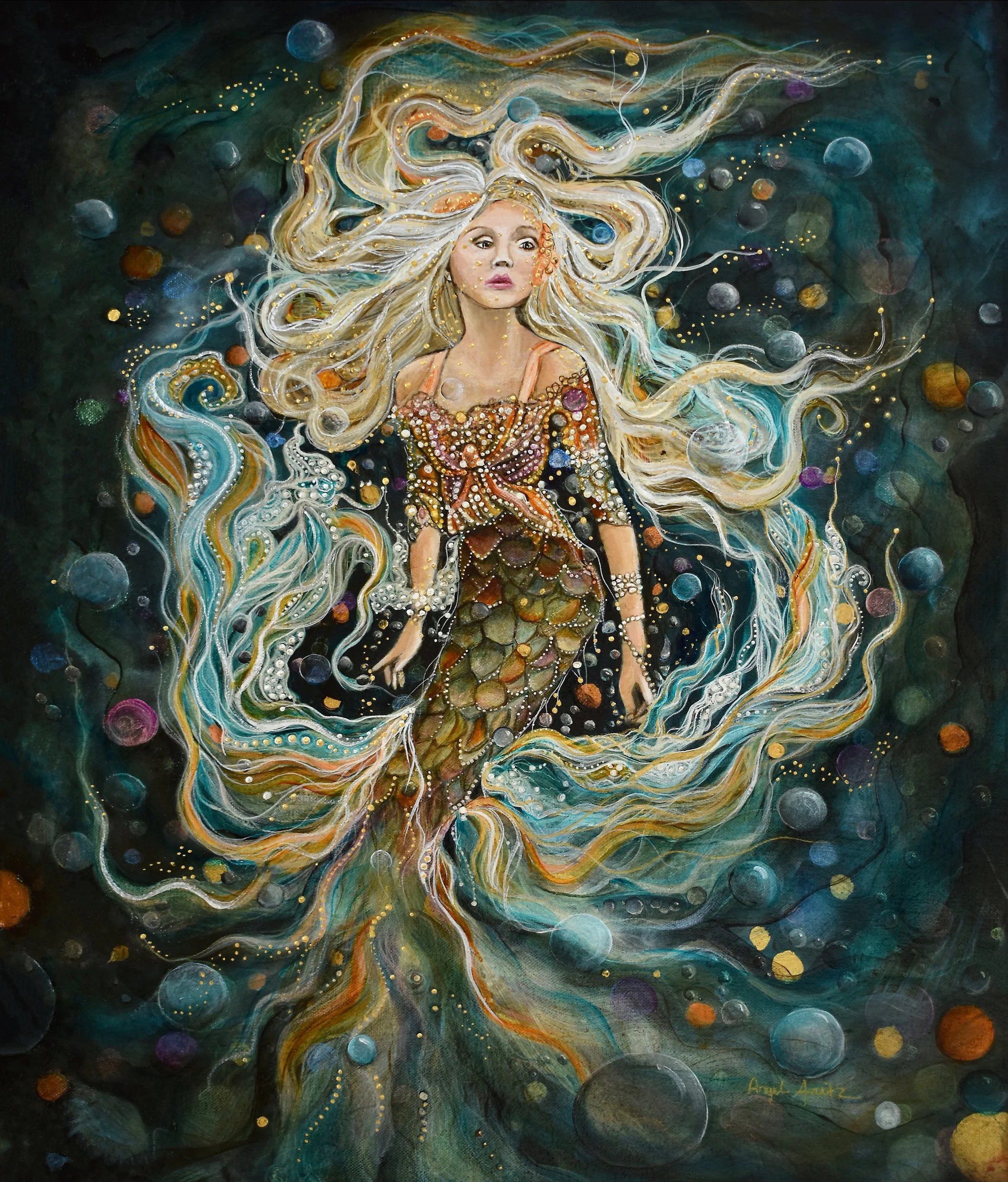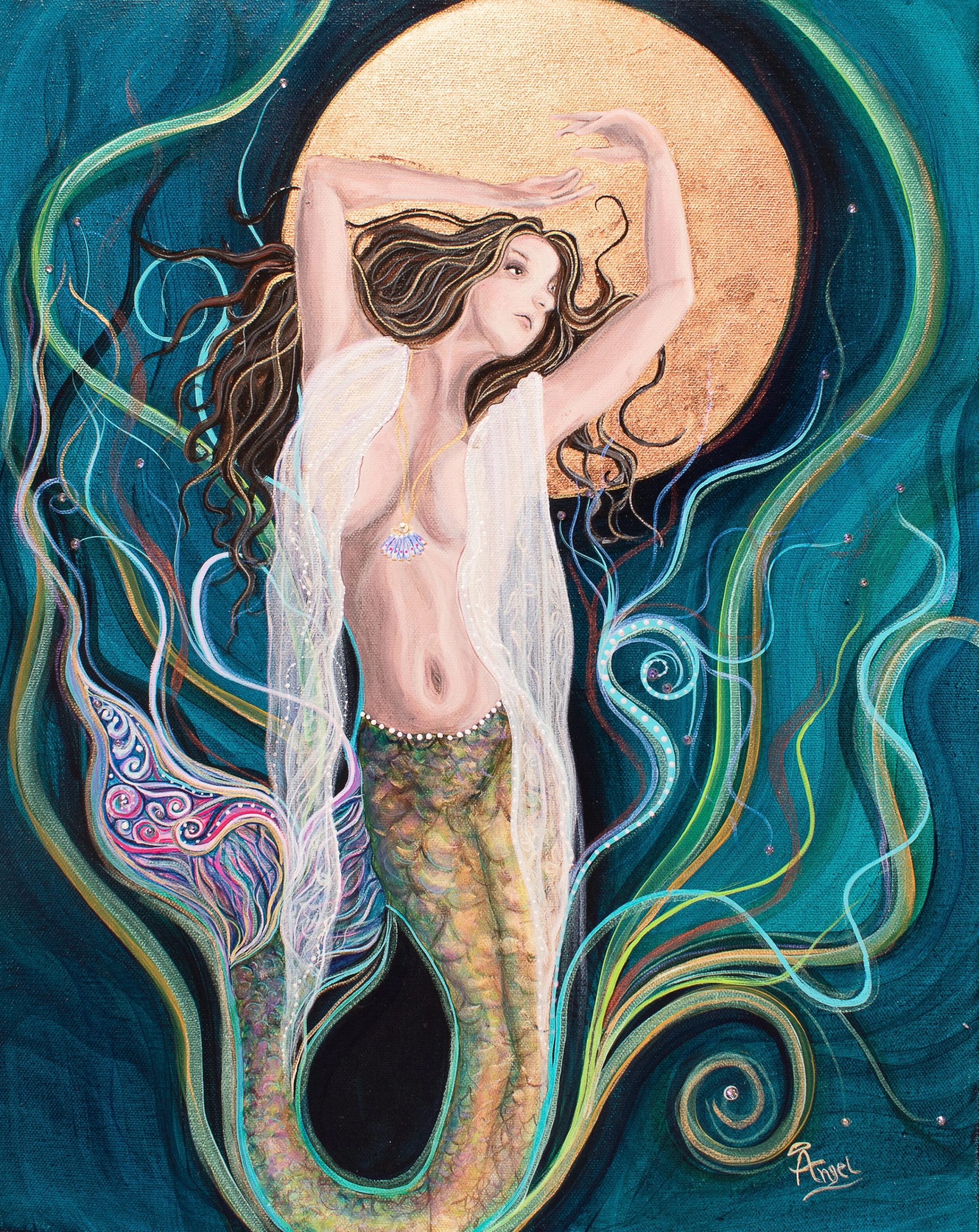 This collection of mermaid art prints is reproduced from original paintings by Angel Fritz and printed with archival inks on museum-quality paper for exceptional color, depth, and longevity.