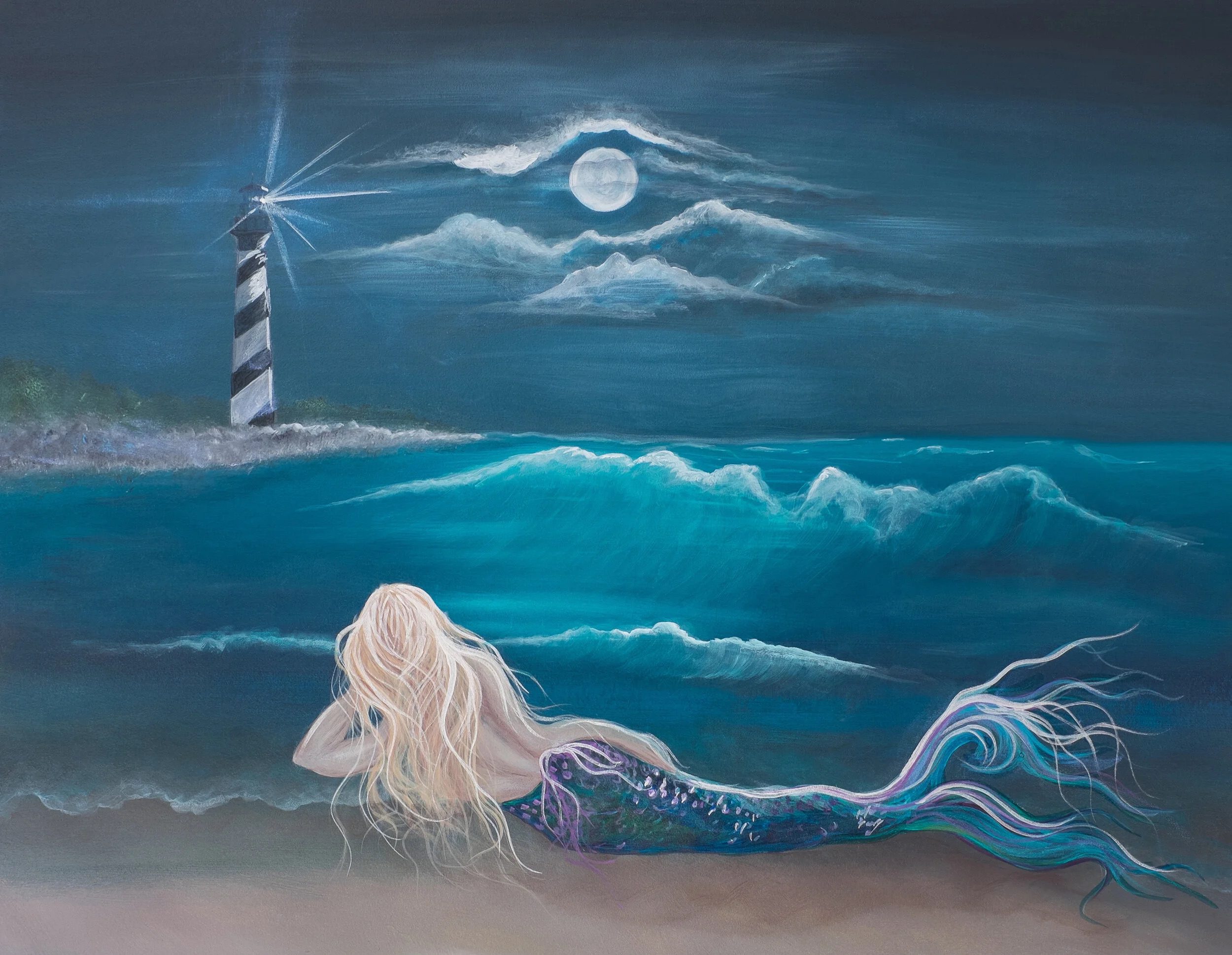 Each mermaid in the collection represents a distinct Outer Banks village, inspired by its landscape, energy, and coastal character. Together, the series tells a visual story of place, femininity, and the enduring connection between sea and soul. Printed with care to preserve the texture and nuance of the original artwork, these fine art reproductions are designed for collectors who value craftsmanship, meaning, and timeless beauty.