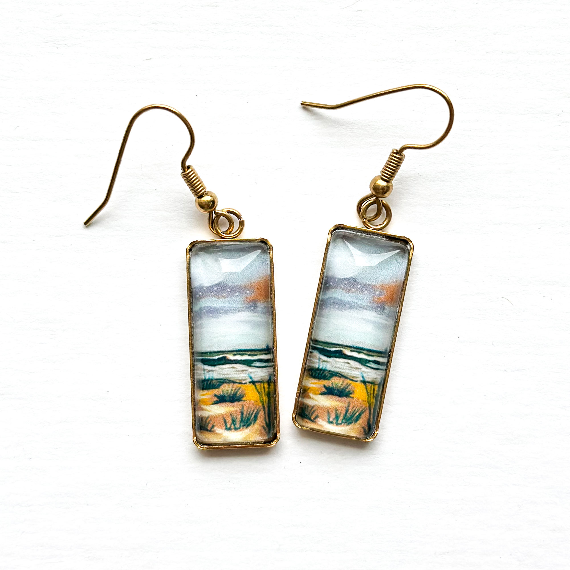 *These lightweight bar earrings feature tiny prints of my original paintings, they’re rich in color and painterly detail. They add a fun, vibrant touch to any look.