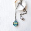 These colorful necklaces feature a print of one of my original paintings. The image is glazed into a glass dome, which is attached to a metal pendant tray.