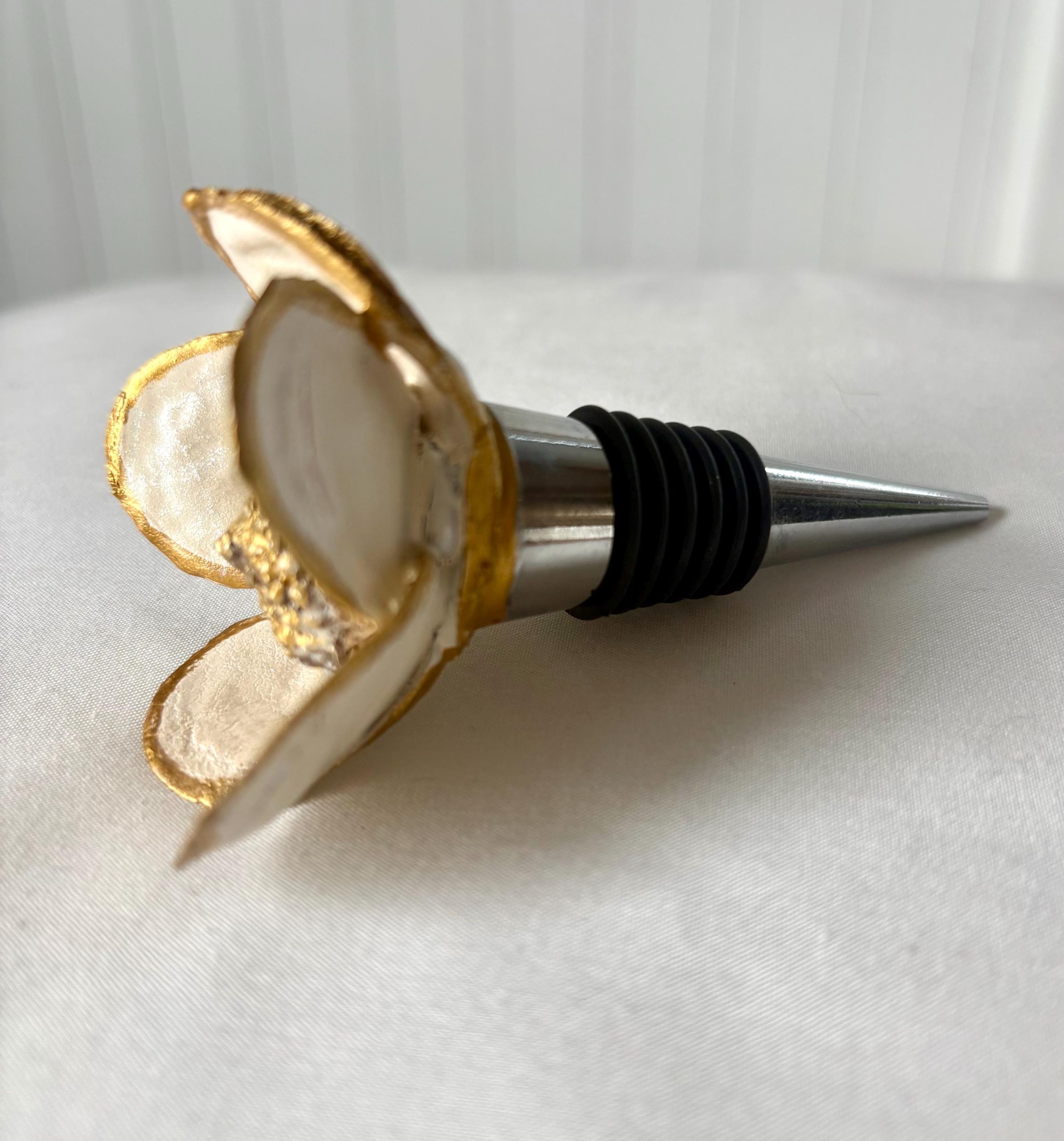 Oyster Shell Magnolia Wine Stopper: Coastal Barware Gift