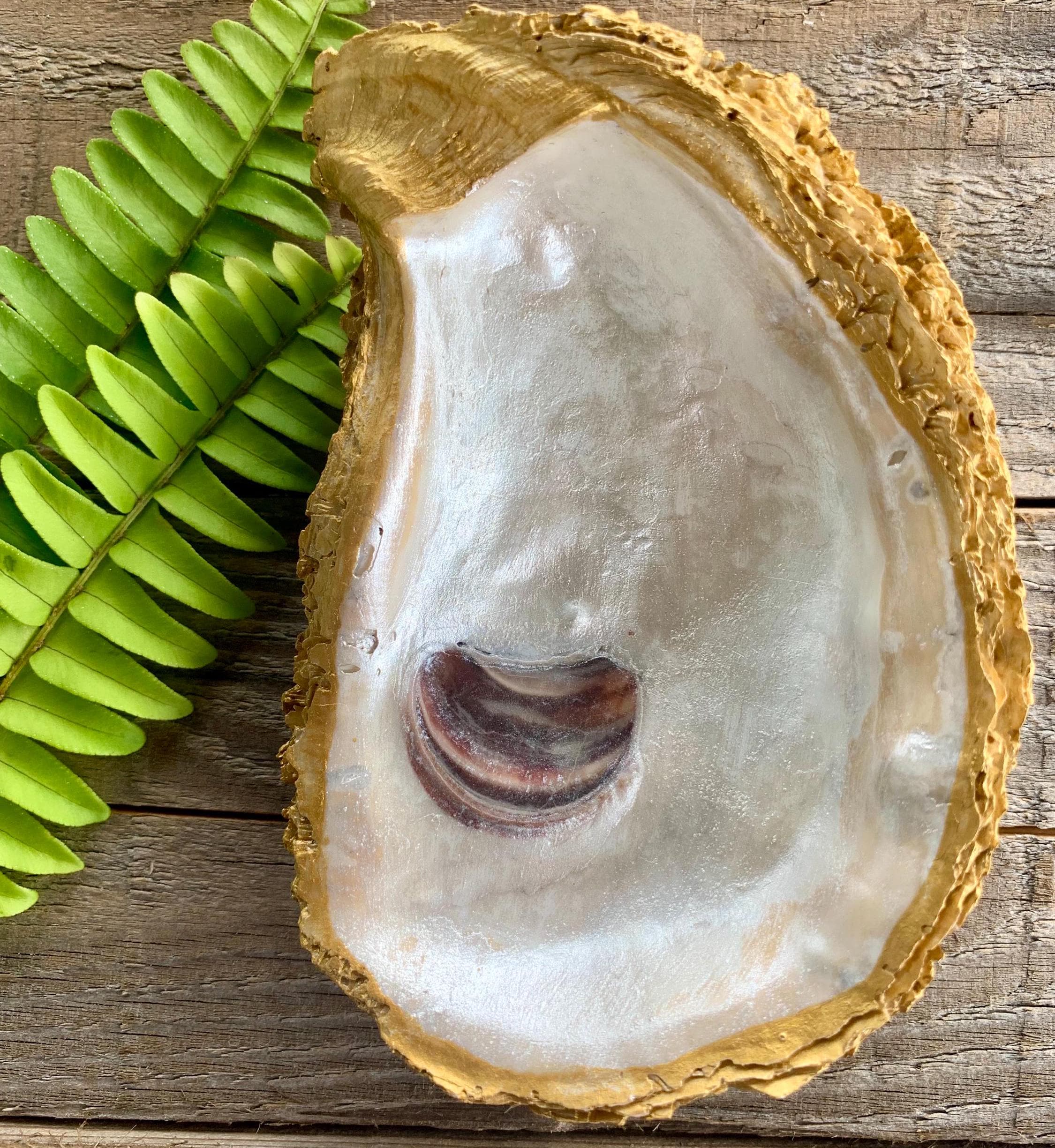 Crafted with care and precision, these handcrafted oysters hail from the coastal waters of North Carolina, embodying a touch of local charm in every shell. Each oyster boasts a lustrous opaque finish that gleams naturally, accentuated with delicate strokes of gold-leaf paint to elevate its beauty. Perfect for showcasing your rings and jewelry or adorning any space with a coastal allure, these oysters serve as versatile decor pieces. Whether you’re looking for a thoughtful hostess gift, a unique wedding favor, a charming bridesmaid token, a festive Christmas surprise, a memorable birthday present, or a warming housewarming gesture, these exquisite oysters cater to various gifting occasions. Embrace the essence of the coast and add a touch of elegance to any setting with these locally sourced treasures from North Carolina. Approximate size: 5.75″ x 3.5″