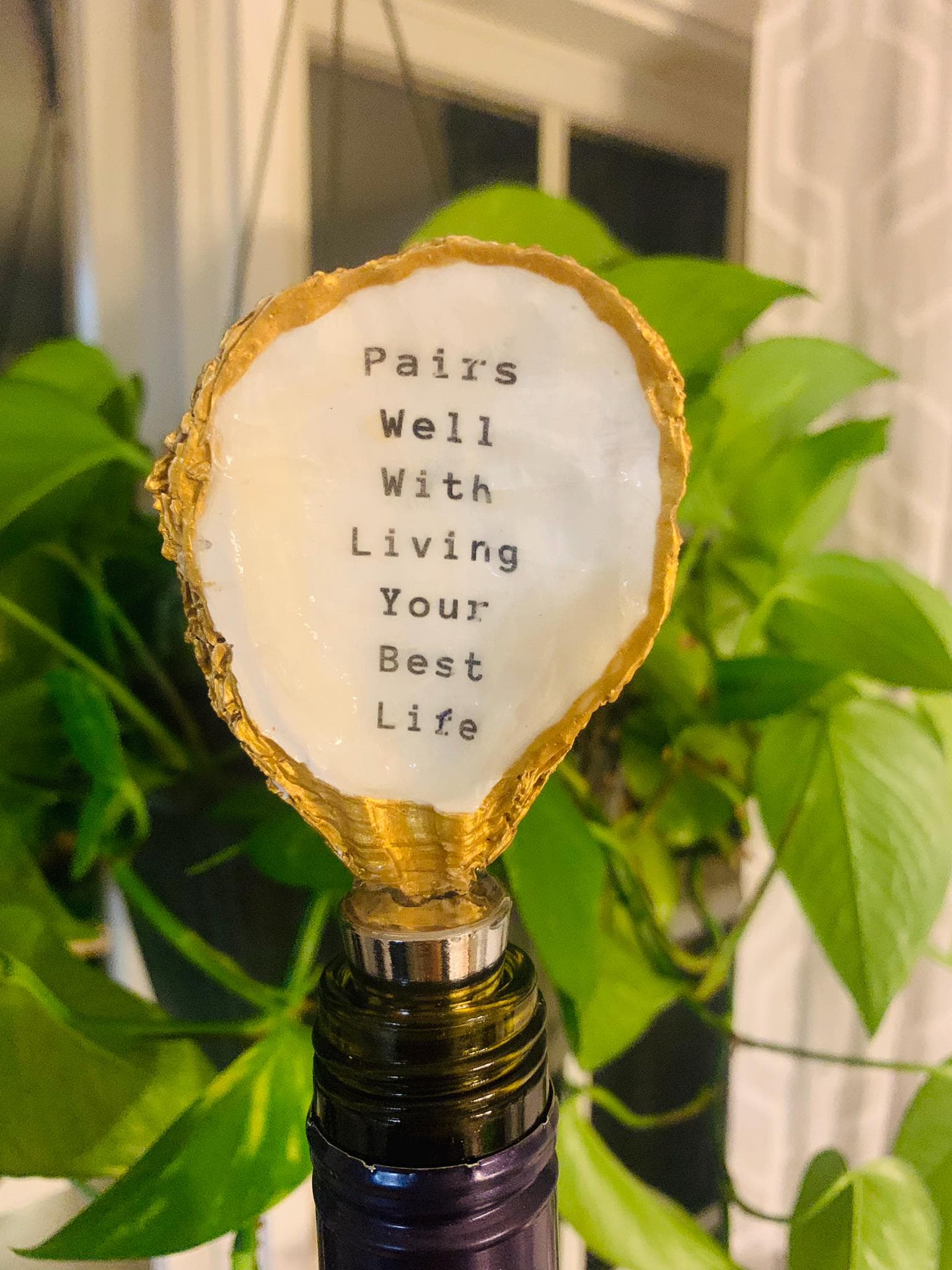 Elevate your wine experience with the “Pairs Well With Living Your Best Life” Oyster wine bottle stopper. This handcrafted wine stopper is a true gem for those who appreciate coastal vibes. Each piece is locally sourced, adding an authentic touch to this exquisite treasure. Its versatility makes it an ideal choice for various occasions, whether as a thoughtful hostess gift, a memorable wedding favor, a wine enthusiast gift, or even a special treat for yourself gift. Embrace its charm and practicality, perfect for adding a touch of seaside elegance to any gathering. Please note that due to its artisanal nature, the size and shape of the oyster shell may vary subtly, making each stopper one-of-a-kind.