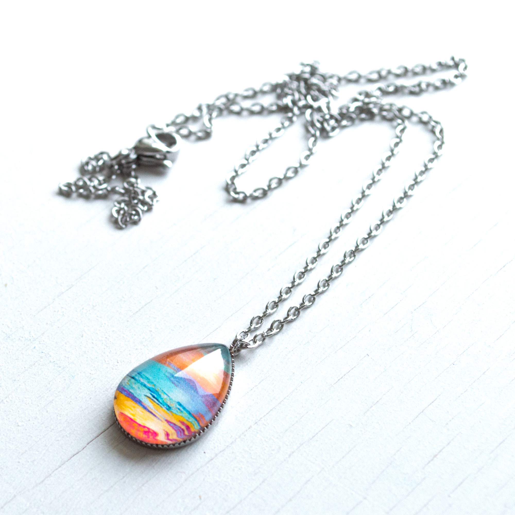 Peaceful Seascape – Stainless Steel Teardrop Necklace or Set Price range: $20.00 through $40.00