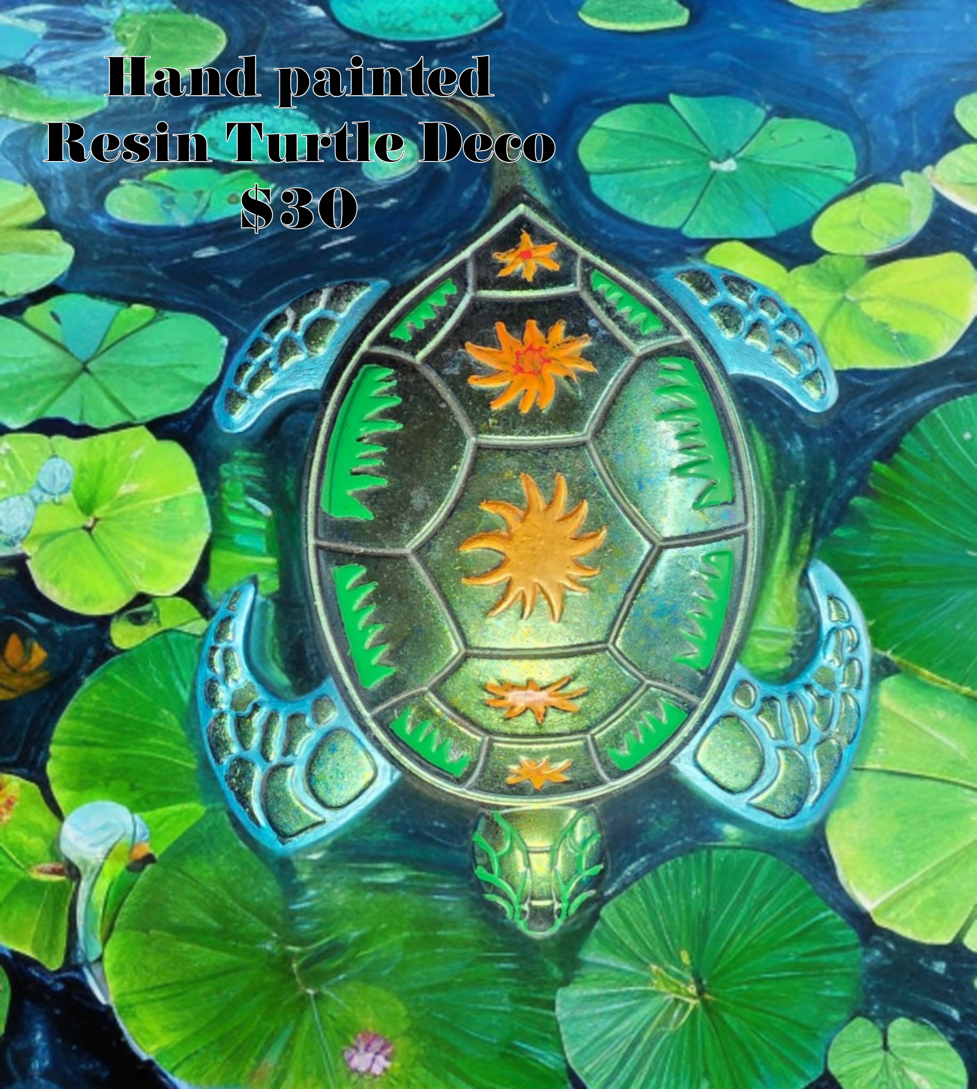 Handmade resin painted turtle Deco perfect for decorating your beach cottage. These handmade items can be customized to your color palette of your choice or you can purchase in stock items.