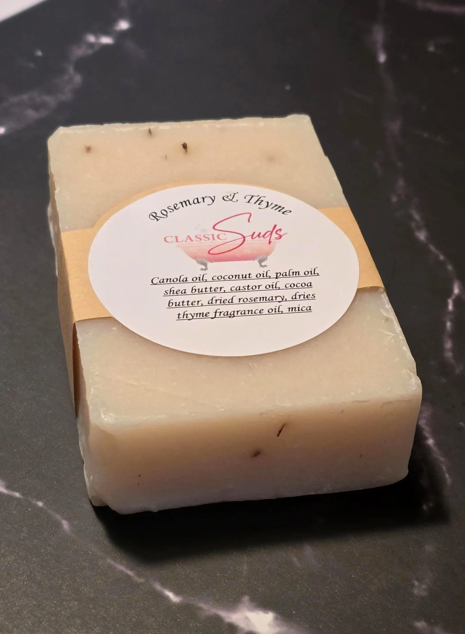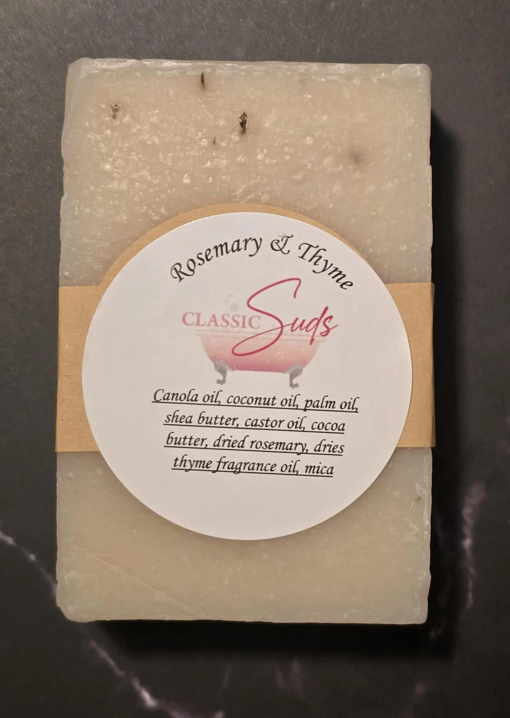 Rosemary and Thyme soap bar is make with fresh herbs for gentle exfoliation and has a magical aroma of fresh rosemary and thyme.