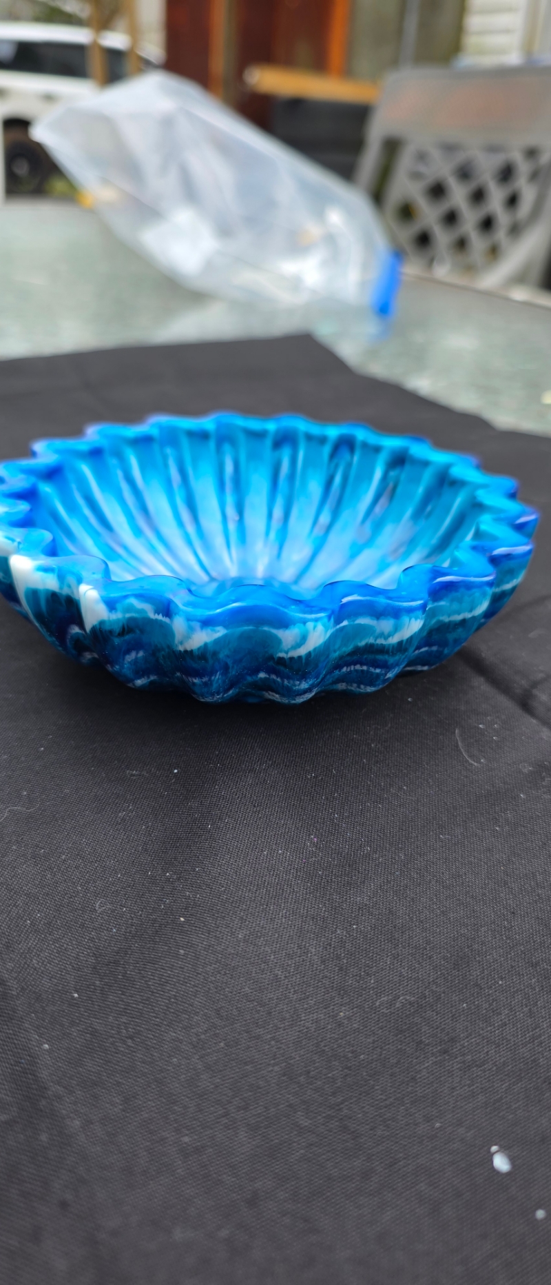 Vintage style hand made resin bowl. This is a custom made bowl it can be customized with colors of your choice or you can buy existing inventory. These are perfect to put in the bathroom to put Jewelry in or anywhere as a Deco piece.