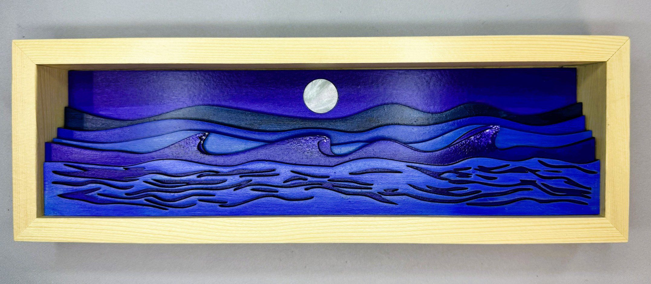 Moody Purple Moonscape Shadowbox Wall Art ~ 12″X4″ Original Design~Laser Cut~Hand Painted. Each piece is individually made giving you a truly unique piece of art.