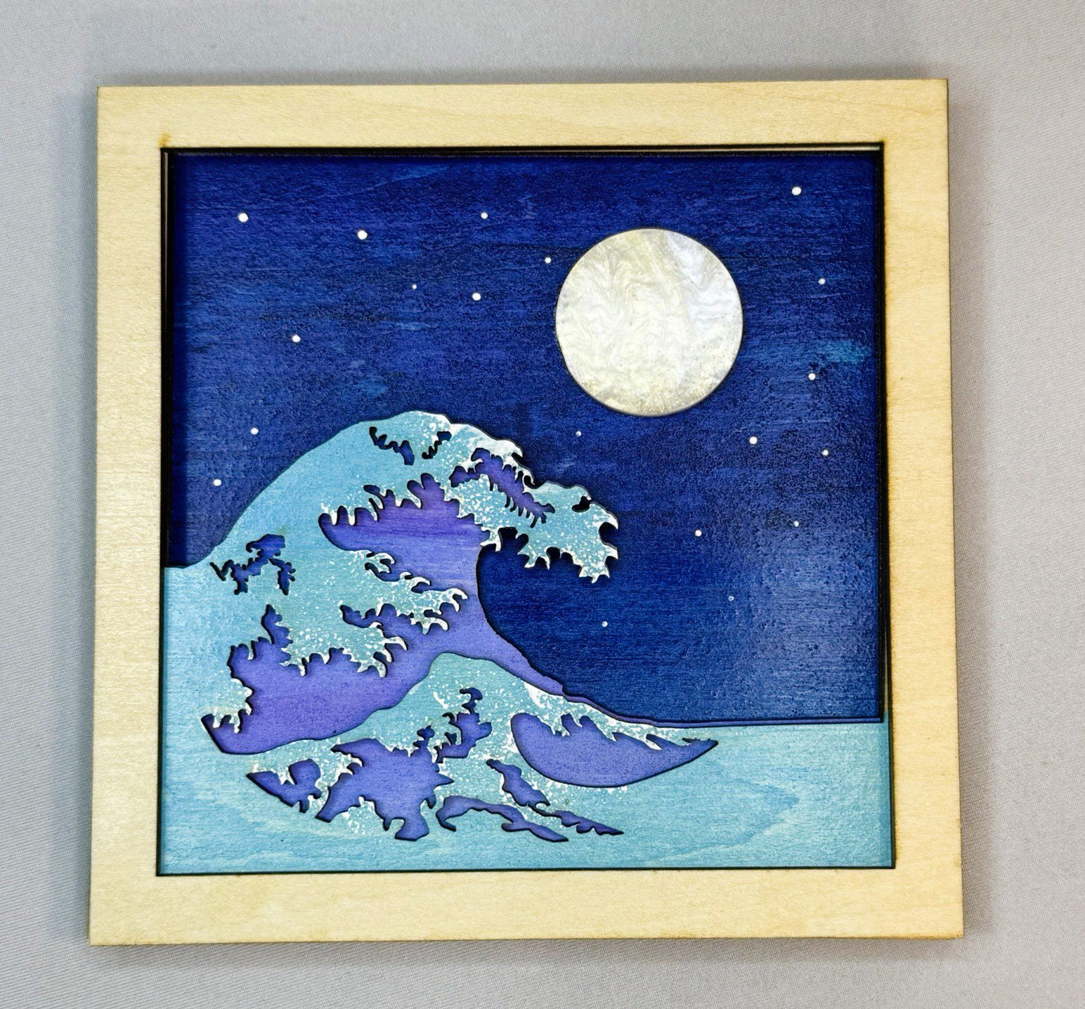 Moon Wave Framed Wall Art ~ Original Design~Laser cut~ Hand painted. Each piece is individually made giving you a truly unique piece of art.