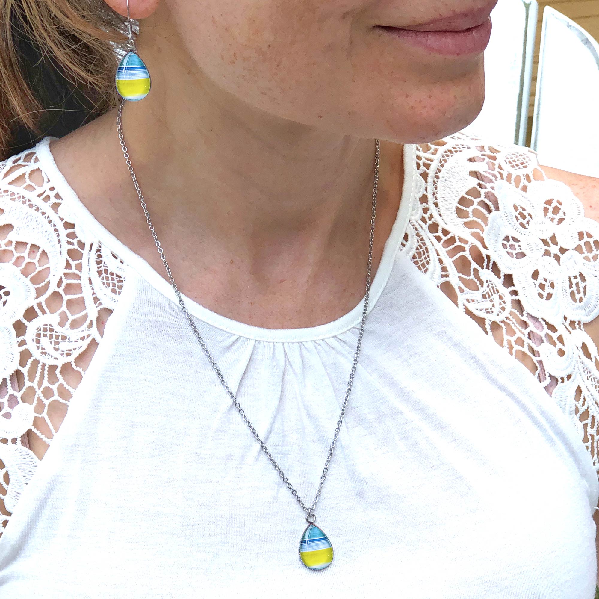 Watercolor Block – Stainless Steel Teardrop Necklace or Set Price range: $20.00 through $40.00